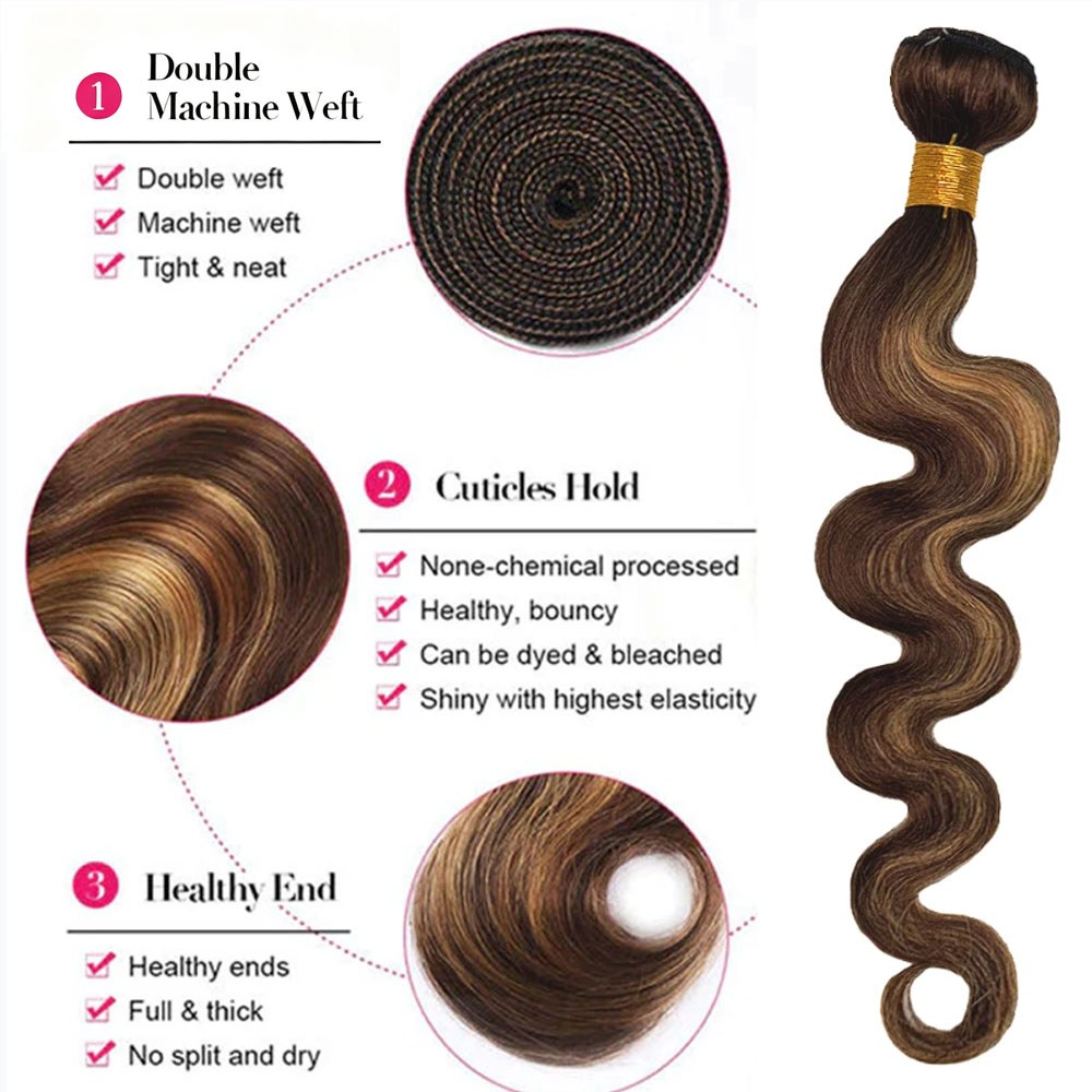 427 Highlight 20–30Inch Luxury Body Wave Virgin Brazilian Hair Bundles – 3/4/5 Bundles, Silky & Full, 100% Human Hair Extensions