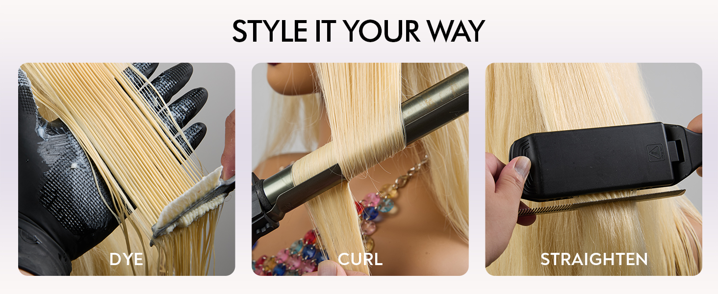 Can be bleached, stretched, dyed, permed, and styled as you like. Lasts 1–2 years with proper care.