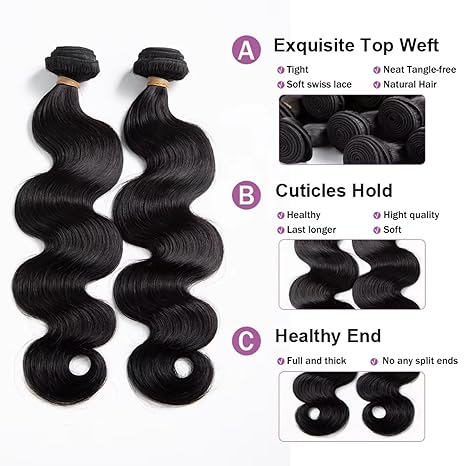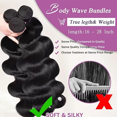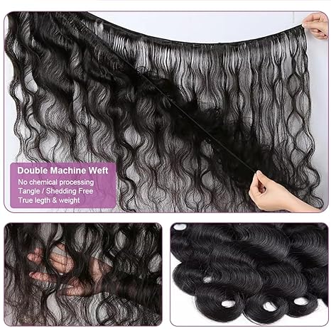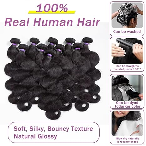 100% Virgin Human Hair Body Wave Bundles - 4/5 Bundles, Soft & Shiny, Natural Look, Comes with 3 Free Gifts