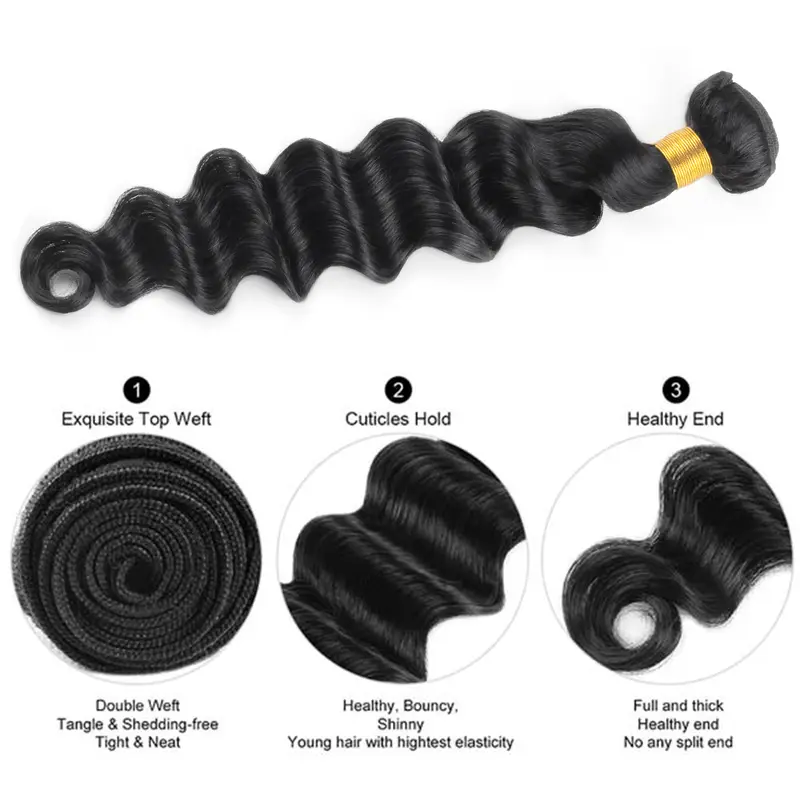 Loose Wave Bundles - 100% Virgin Human Hair, 4/5 Bundles, Natural Texture, Silky Finish, Comes with 3 Free Gifts