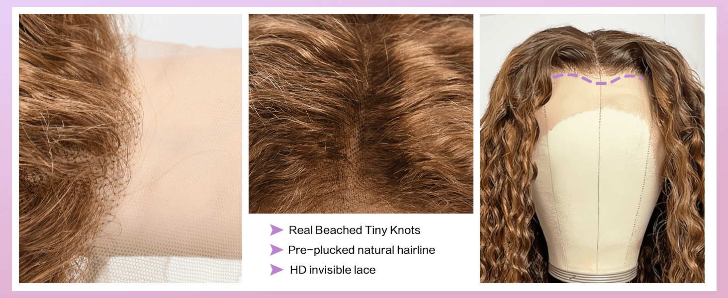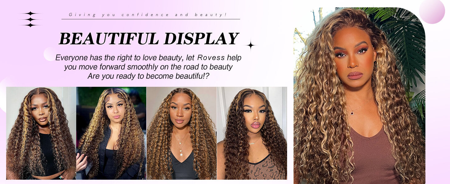 • Highlight Lace Front Wig Human Hair Texture – P4/27 honey blonde HD lace front wig, pre-plucked with natural hairline and baby hair around. Looks natural, realistic, and healthy like your own hair.