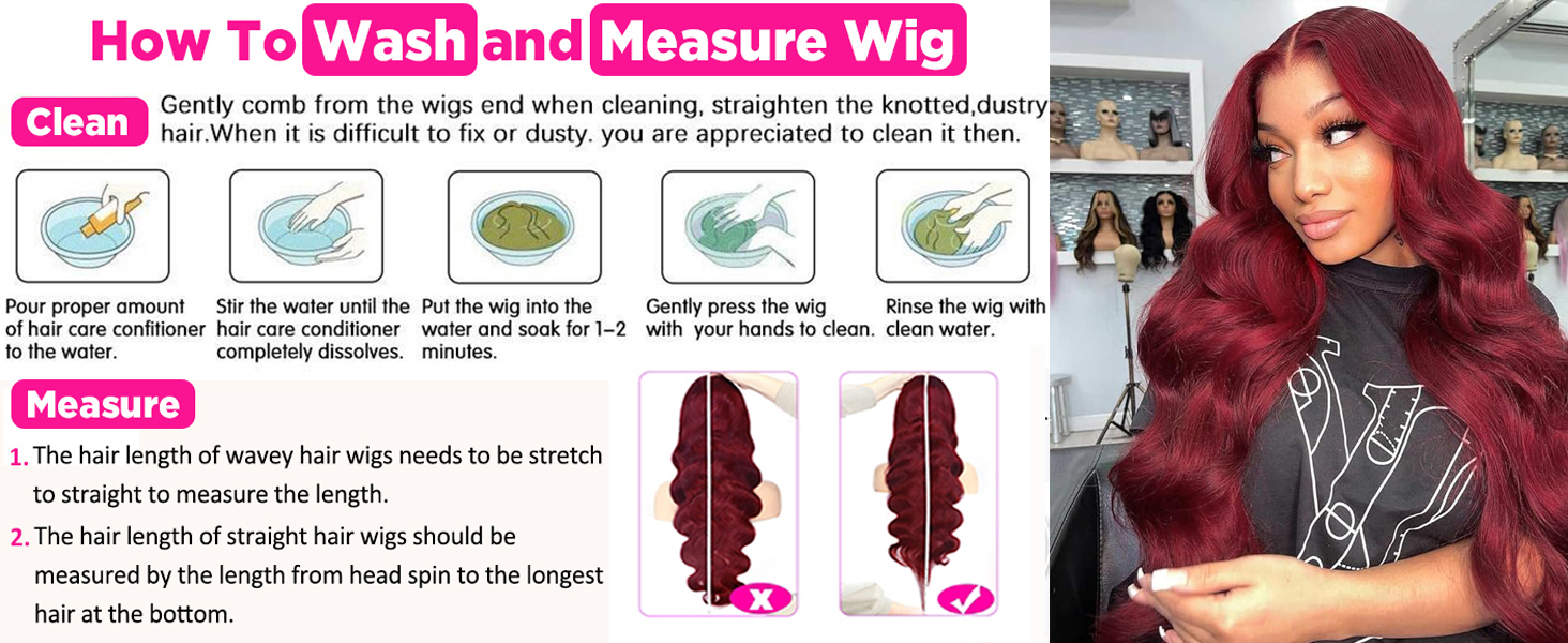 • Burgundy Lace Frontal Wigs Quality — 13x6 HD lace front wig made from 100% unprocessed Brazilian virgin human hair. Body wave texture with no shedding or tangling. Soft, full, natural-looking with healthy luster and color.